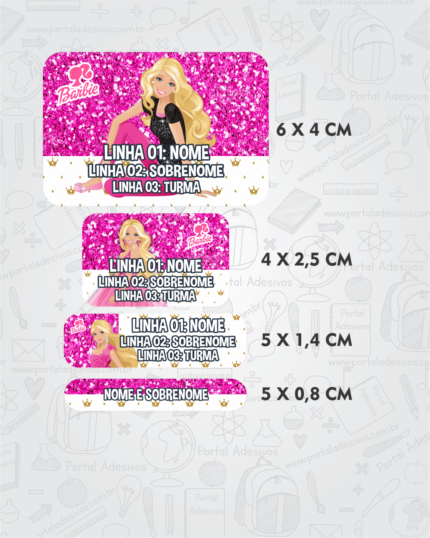 As etiquetas serão iguais ao tema escolhido e com os mesmos dados preenchido acima.
