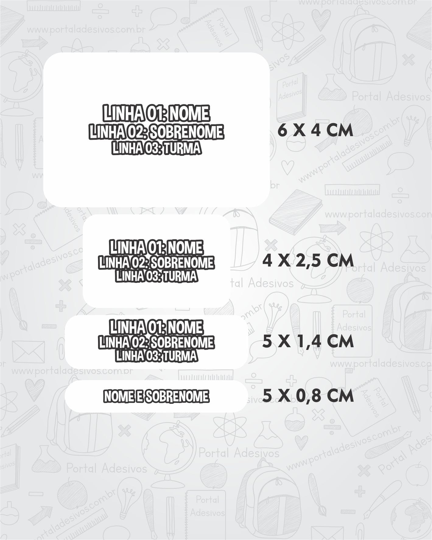 As etiquetas serão iguais ao tema escolhido e com os mesmos dados preenchido acima.