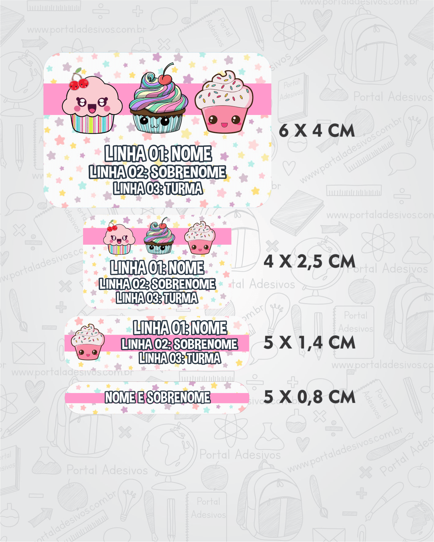 As etiquetas serão iguais ao tema escolhido e com os mesmos dados preenchido acima.