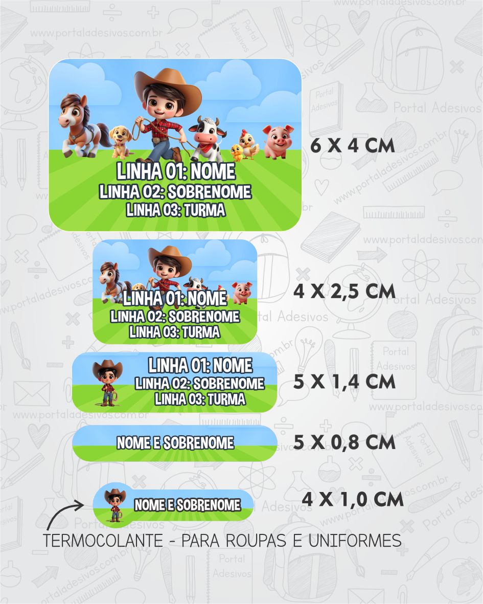 As etiquetas serão iguais ao tema escolhido e com os mesmos dados preenchido acima.