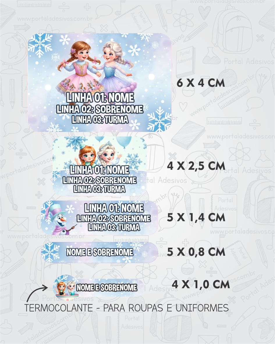 As etiquetas serão iguais ao tema escolhido e com os mesmos dados preenchido acima.
