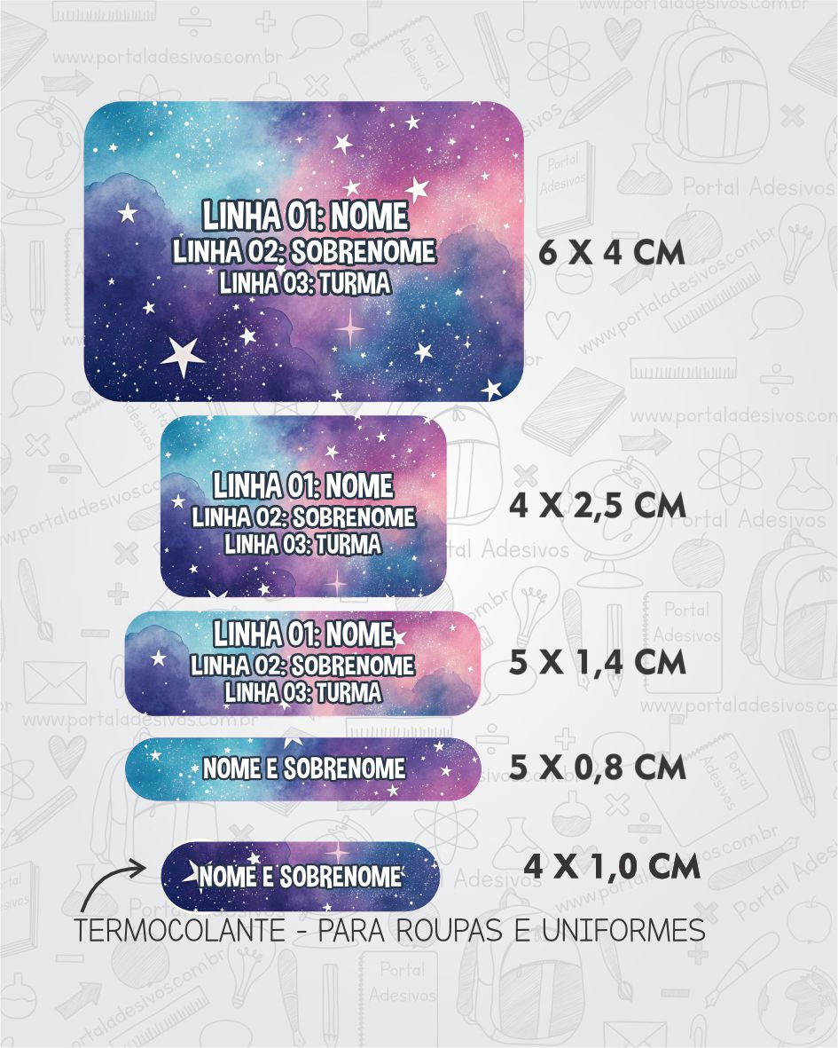 As etiquetas serão iguais ao tema escolhido e com os mesmos dados preenchido acima.