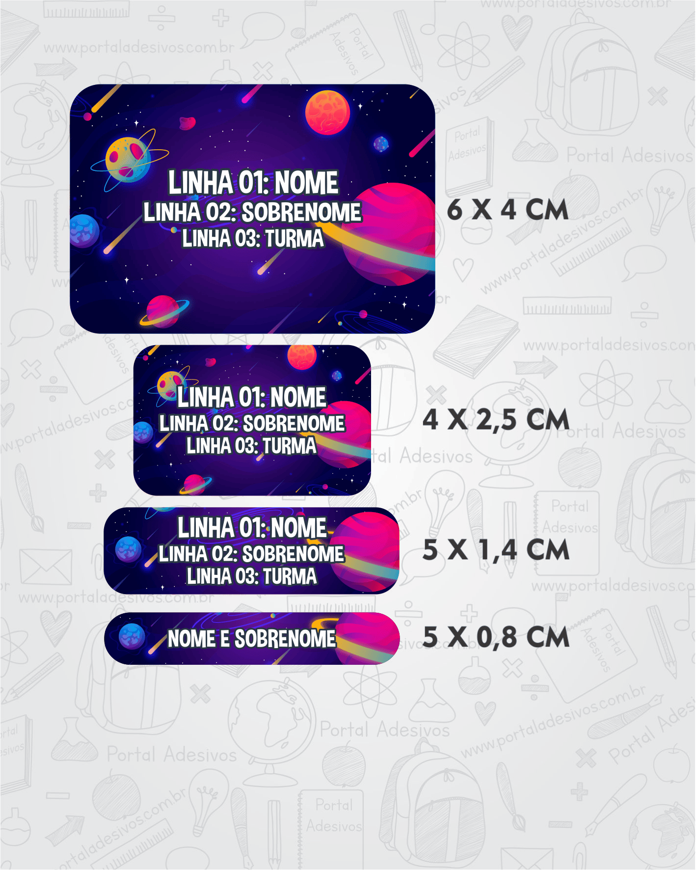 As etiquetas serão iguais ao tema escolhido e com os mesmos dados preenchido acima.