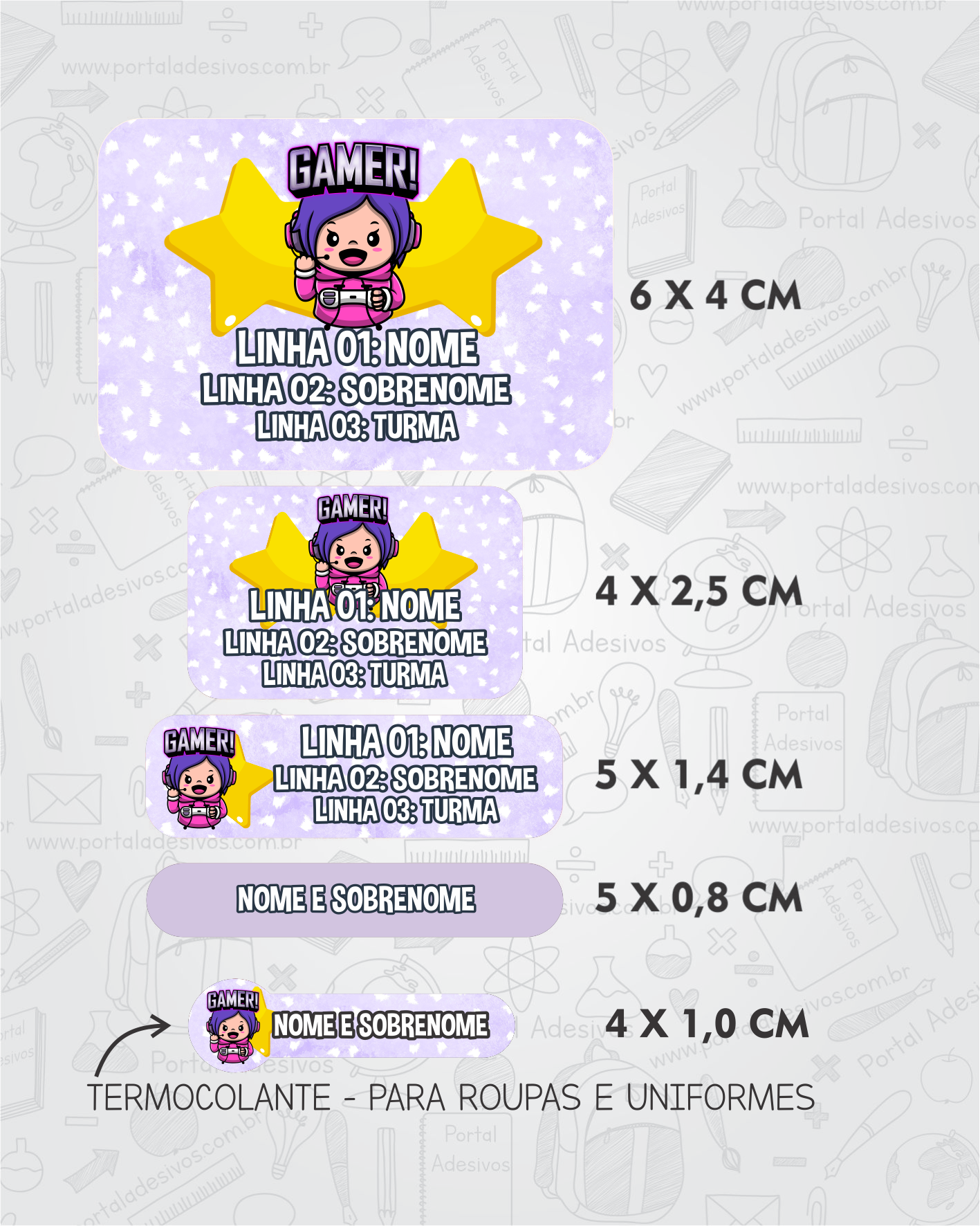 As etiquetas serão iguais ao tema escolhido e com os mesmos dados preenchido acima.