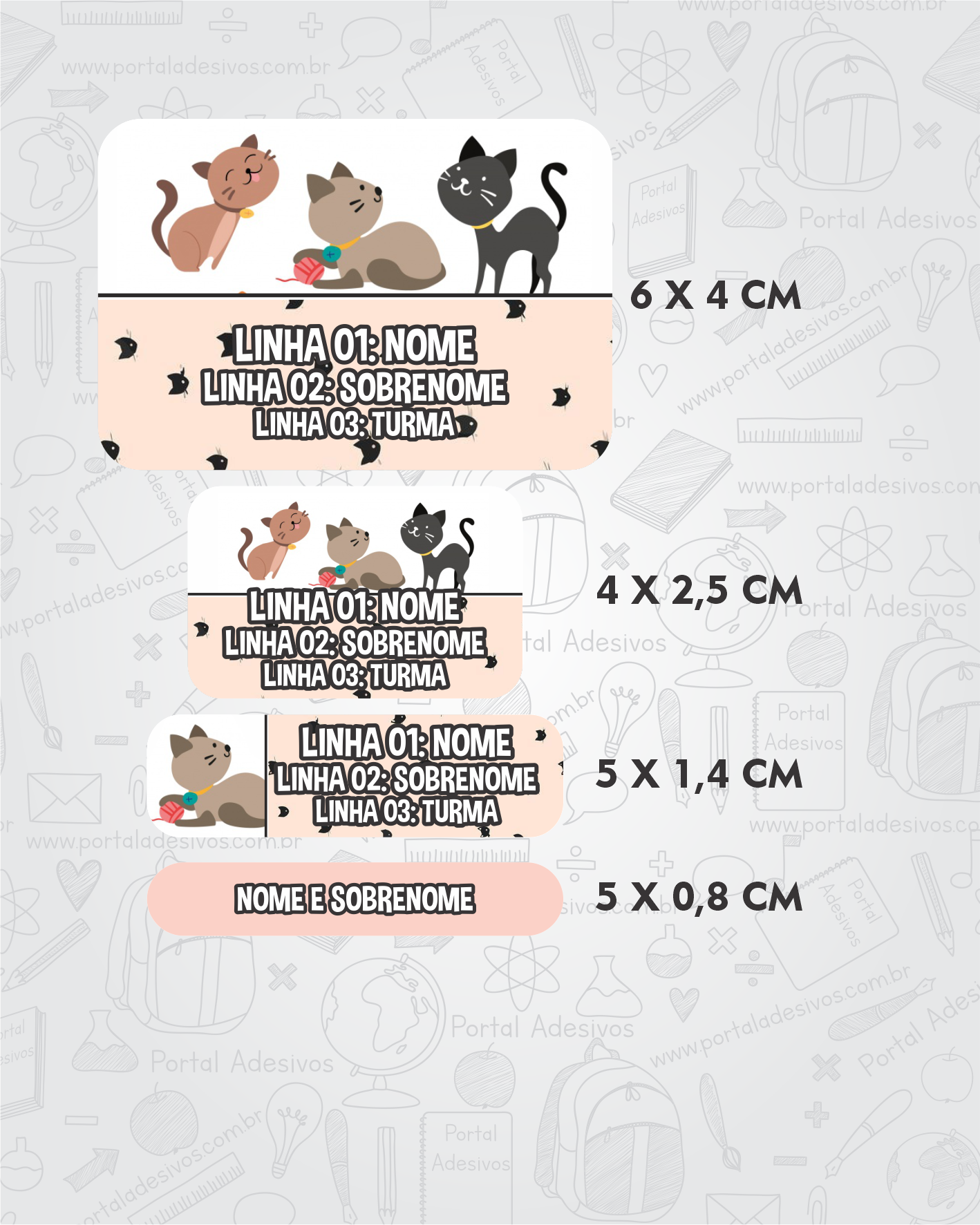 As etiquetas serão iguais ao tema escolhido e com os mesmos dados preenchido acima.