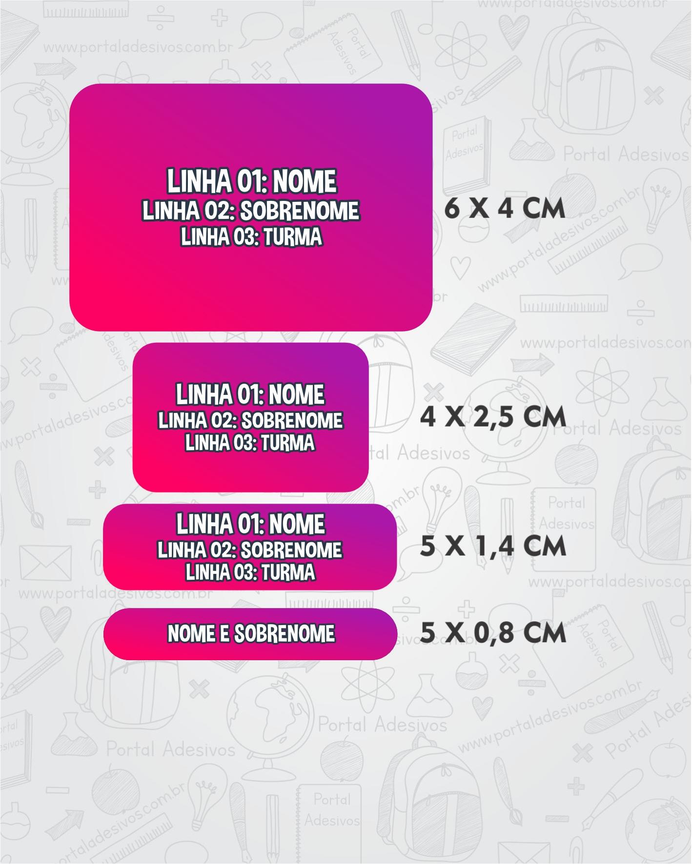 As etiquetas serão iguais ao tema escolhido e com os mesmos dados preenchido acima.