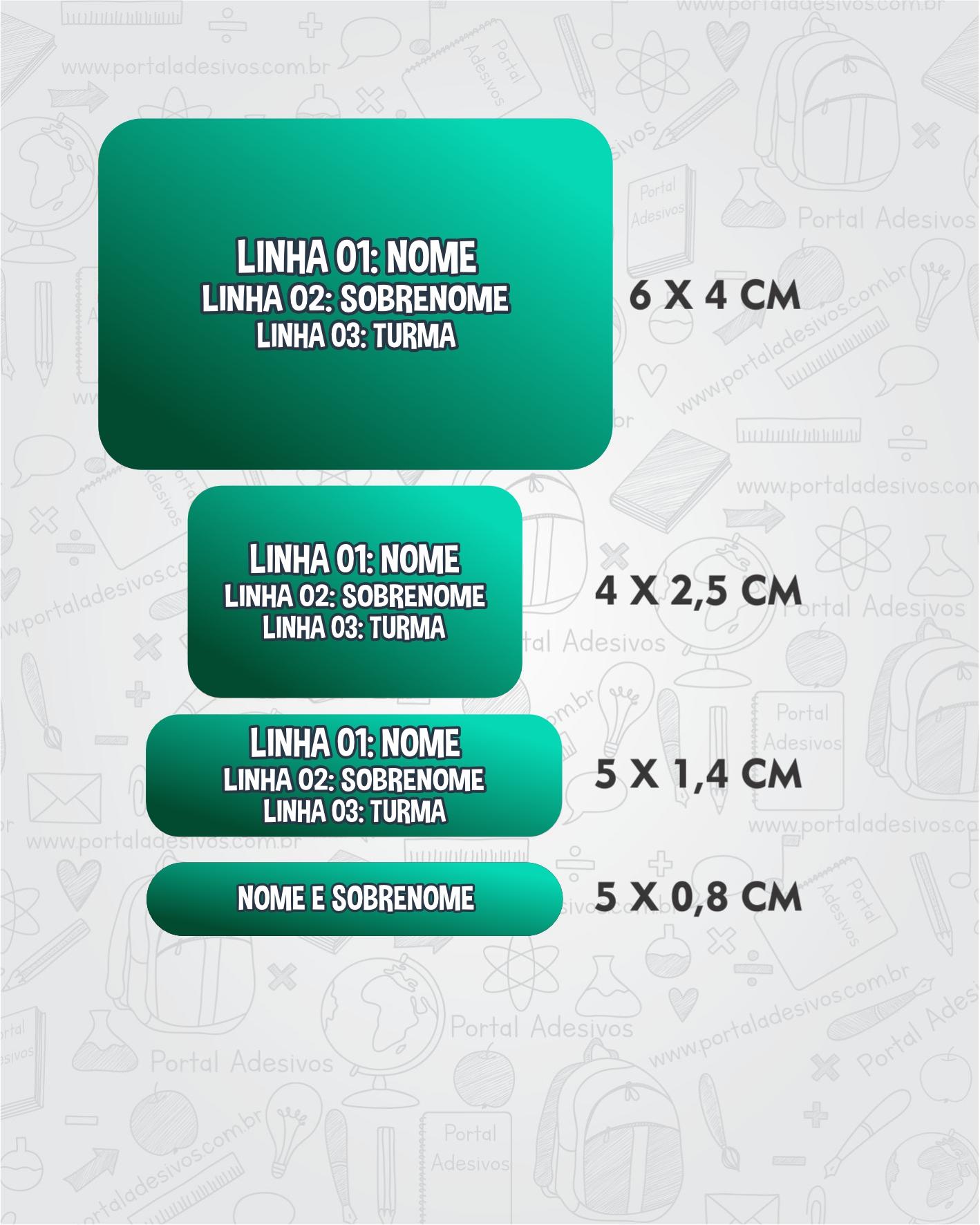 As etiquetas serão iguais ao tema escolhido e com os mesmos dados preenchido acima.