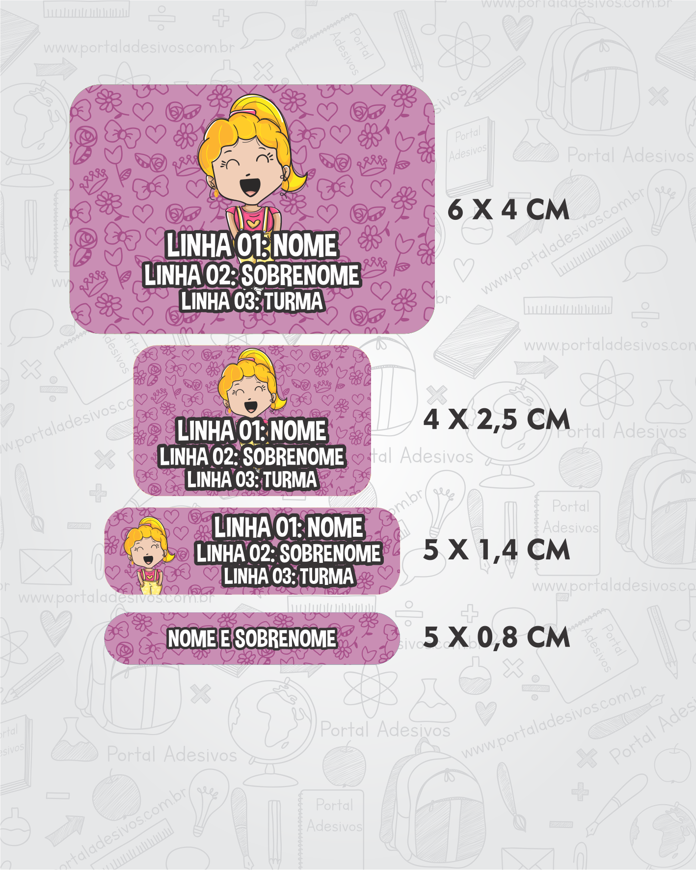 As etiquetas serão iguais ao tema escolhido e com os mesmos dados preenchido acima.