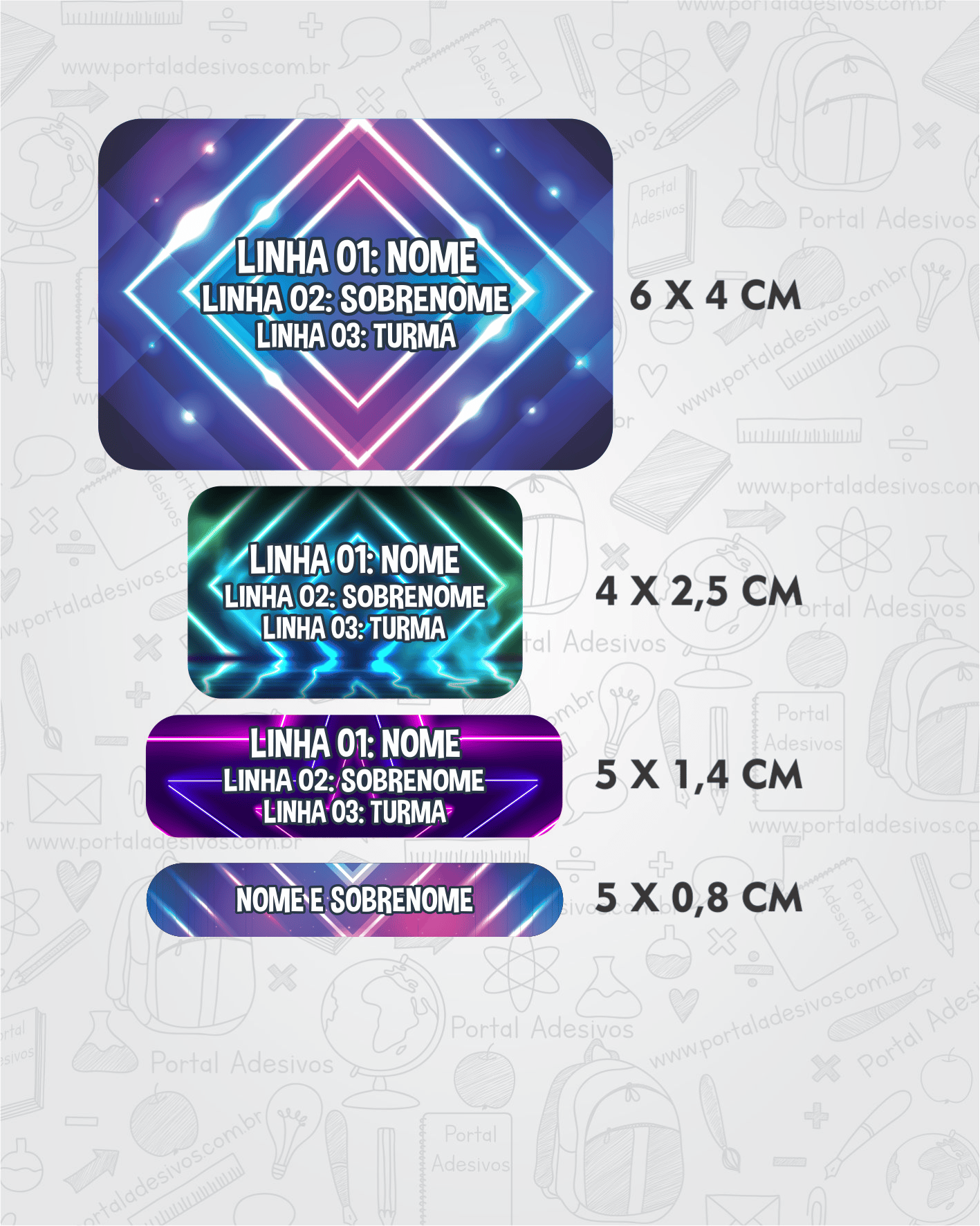 As etiquetas serão iguais ao tema escolhido e com os mesmos dados preenchido acima.