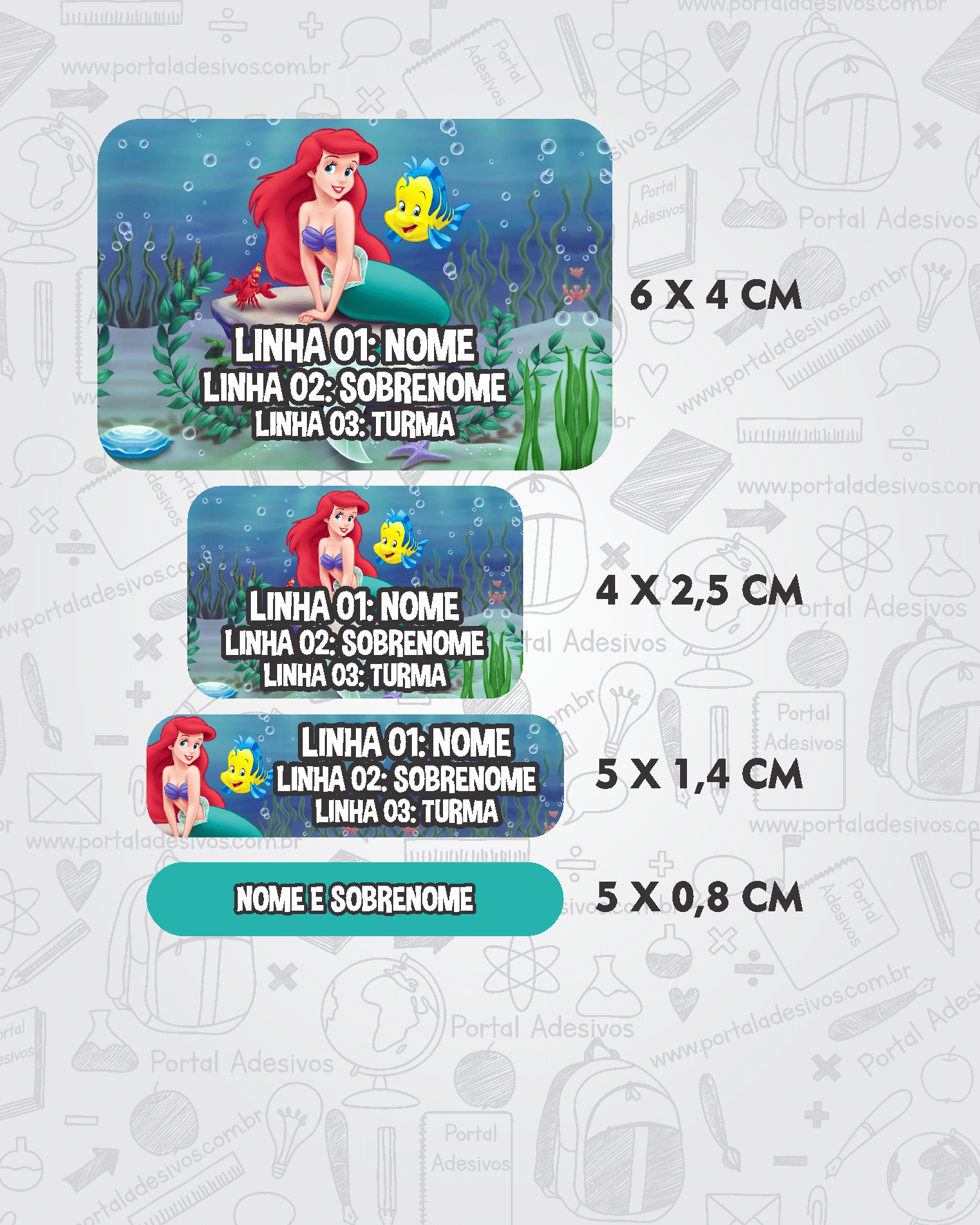 As etiquetas serão iguais ao tema escolhido e com os mesmos dados preenchido acima.
