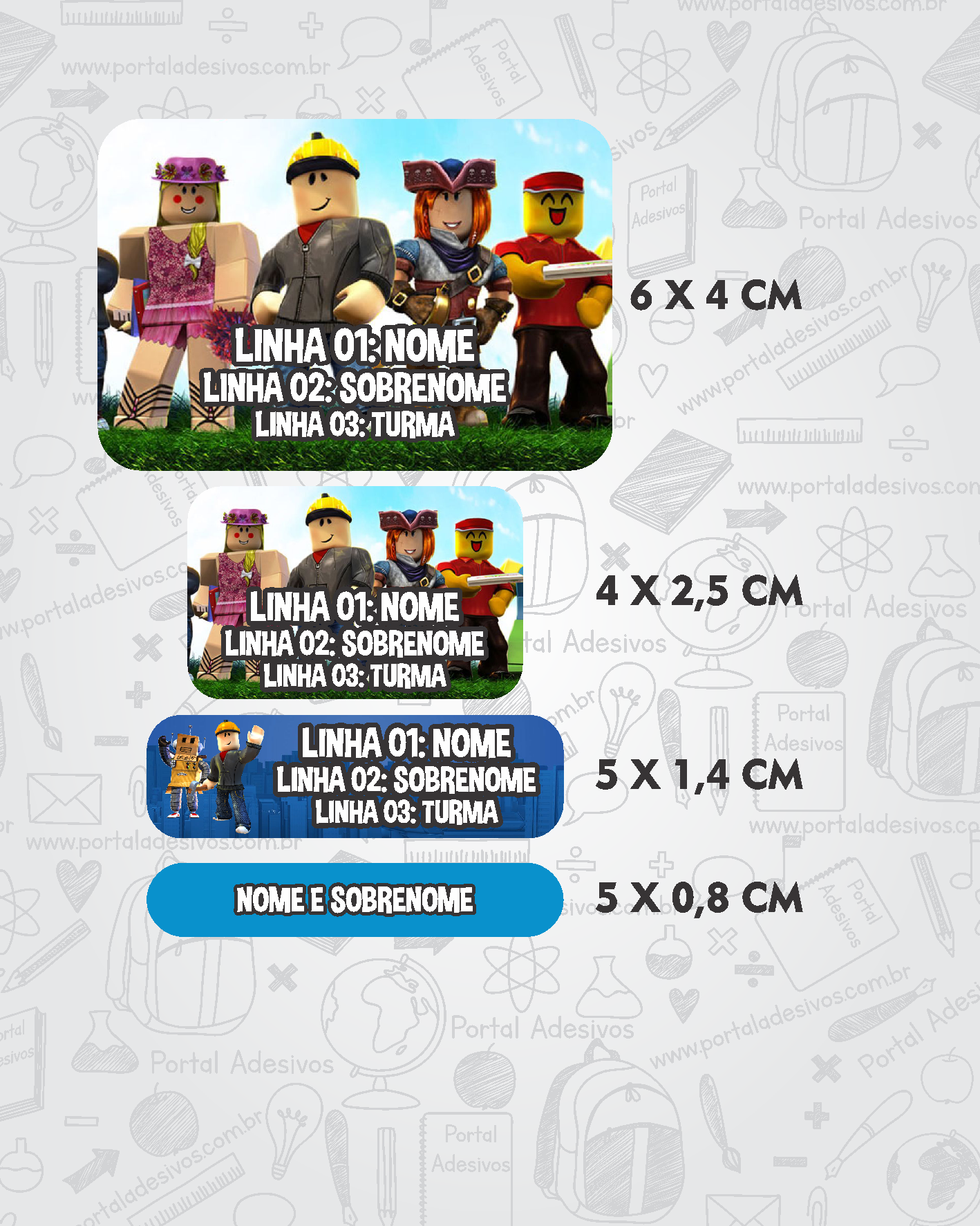 As etiquetas serão iguais ao tema escolhido e com os mesmos dados preenchido acima.