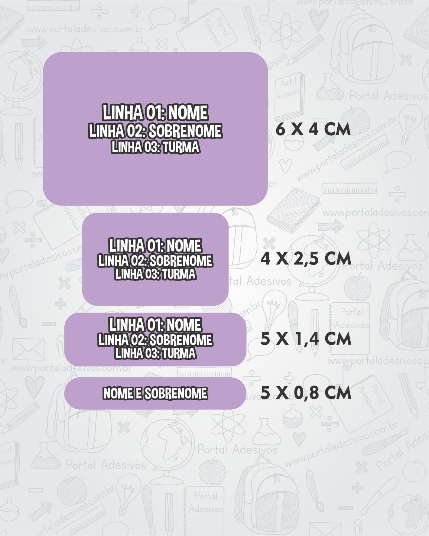 As etiquetas serão iguais ao tema escolhido e com os mesmos dados preenchido acima.