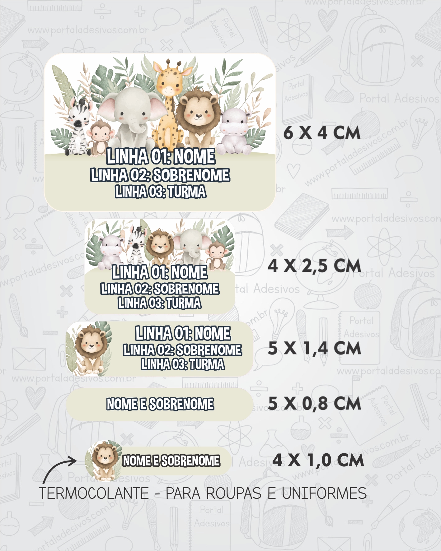 As etiquetas serão iguais ao tema escolhido e com os mesmos dados preenchido acima.