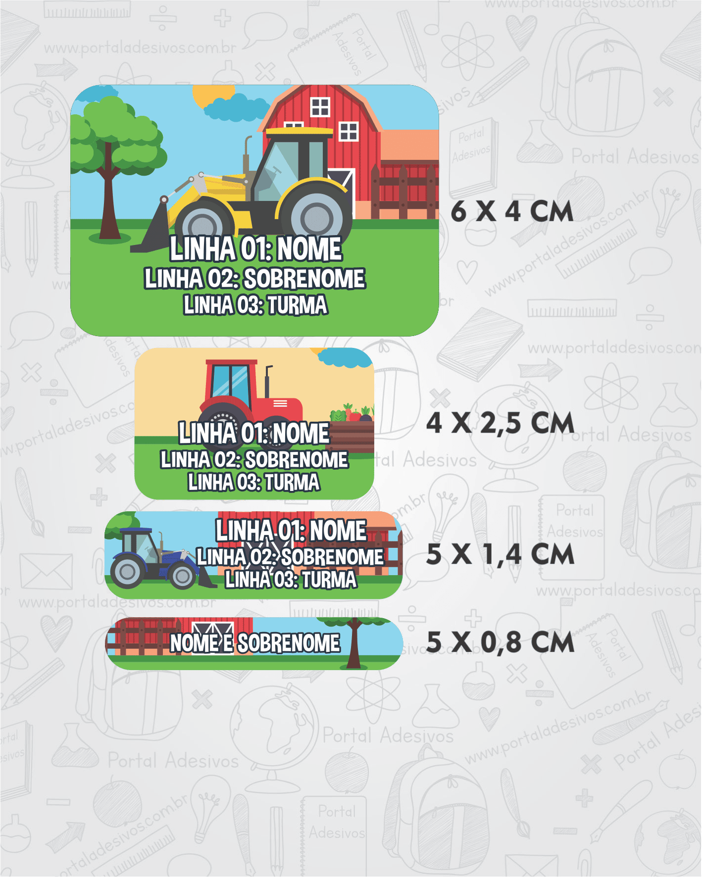 - O Texto das Termocolantes será exatamente igual ao digitado nos campos acima.