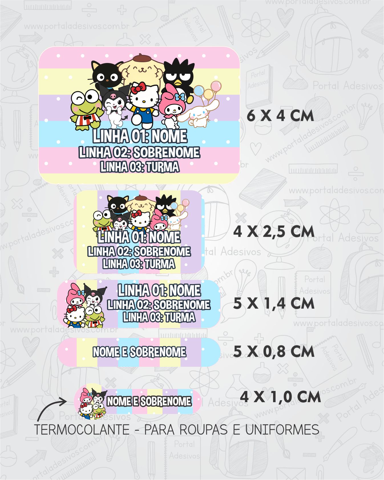 As etiquetas serão iguais ao tema escolhido e com os mesmos dados preenchido acima.
